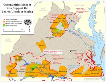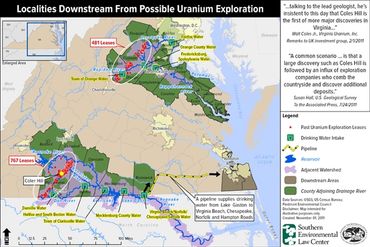 mine? How many existing industries would stay? Would a baby food manufacturer or a brewery not move away? How about the two prestigious schools, Hargrave Military Academy and Chatham Hall, each located only 6 miles from the mine site? Wouldn’t an old mine site be a target for federal radioactive waste dumps? Do we want to forever expose our people and environment to uranium mining’s hazards?